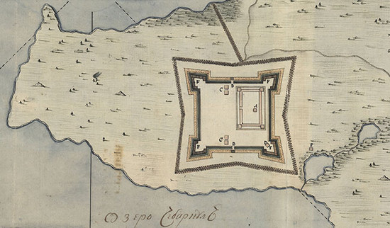 | План Чебаркульской крепости. Внутренняя построена Иваном Арсеньевым, внешняя — Яковом Павлуцким. 1736 год |