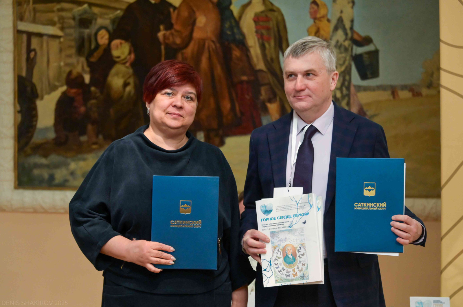Сама дорога до Сатки мимо заснеженных лесов уже настраивала на встречу с прекрасным Синегорьем — сердцем Евразии. Нас гостеприимно встретил один из лучших дворцов культуры России — дворец культуры «Магнезит», архитектором которого был Теодор Эрвальд, спроектировавший немало красивейших зданий в Челябинске и Екатеринбурге. А за этот проект в 1951 году он награжден Государственной премией СССР. На фоне монументальных интерьеров дворца состоялся и сам форум, объединивший краеведческие силы регионов России. В 2022 году, при подготовке первой конференции, инициатором проведения такого масштабного мероприятия выступила администрация Саткинского округа, поддержанная Фондом содействия развитию Саткинского округа. В 2026 году в числе партнеров — Группа «Магнезит», музей «Магнезит», Фонд поддержки и сохранения культурных инициатив «Собрание», Челябинский государственный университет, Общественная палата Челябинской области, Союз философов «Вольная философская ассоциация» и уже упомянутый наш архив.
