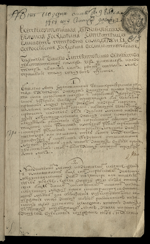 | Челобитная князя Петра Ивановича Репнина об основании медеплавильного завода на реке Ключик. РГАДА. Ф. 271. Оп. 1. Д. 1161. Л. 613 |